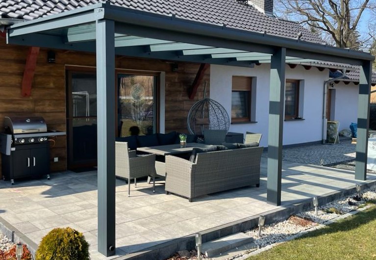 W ofercie znajdują się zadaszenia pokryte płytą poliwęglanową oraz różnego rodzaju szybami. Istnieje również możliwość rozbudowy między innymi w elementy przesuwne.